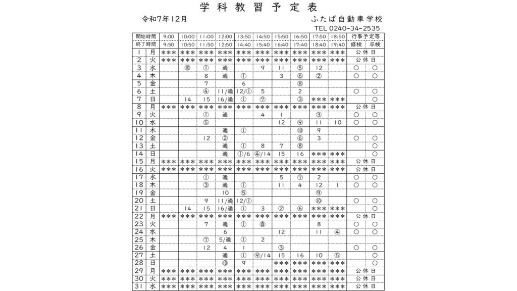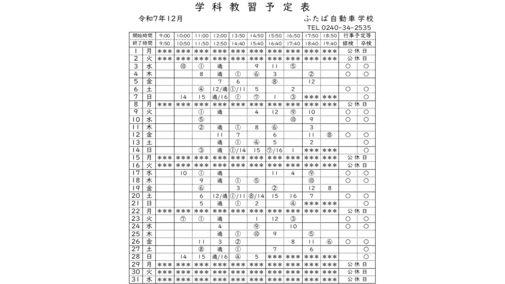 2025.11.02 2025年12月の予定表と公休日を更新しました。 2025年12月の予定表を更新しました。公休日:1日、2日、8日、15日、16日、22日、29日、30日、31日になります。 12月の予定表 2025年11月の予定表と公休日を更新しました。